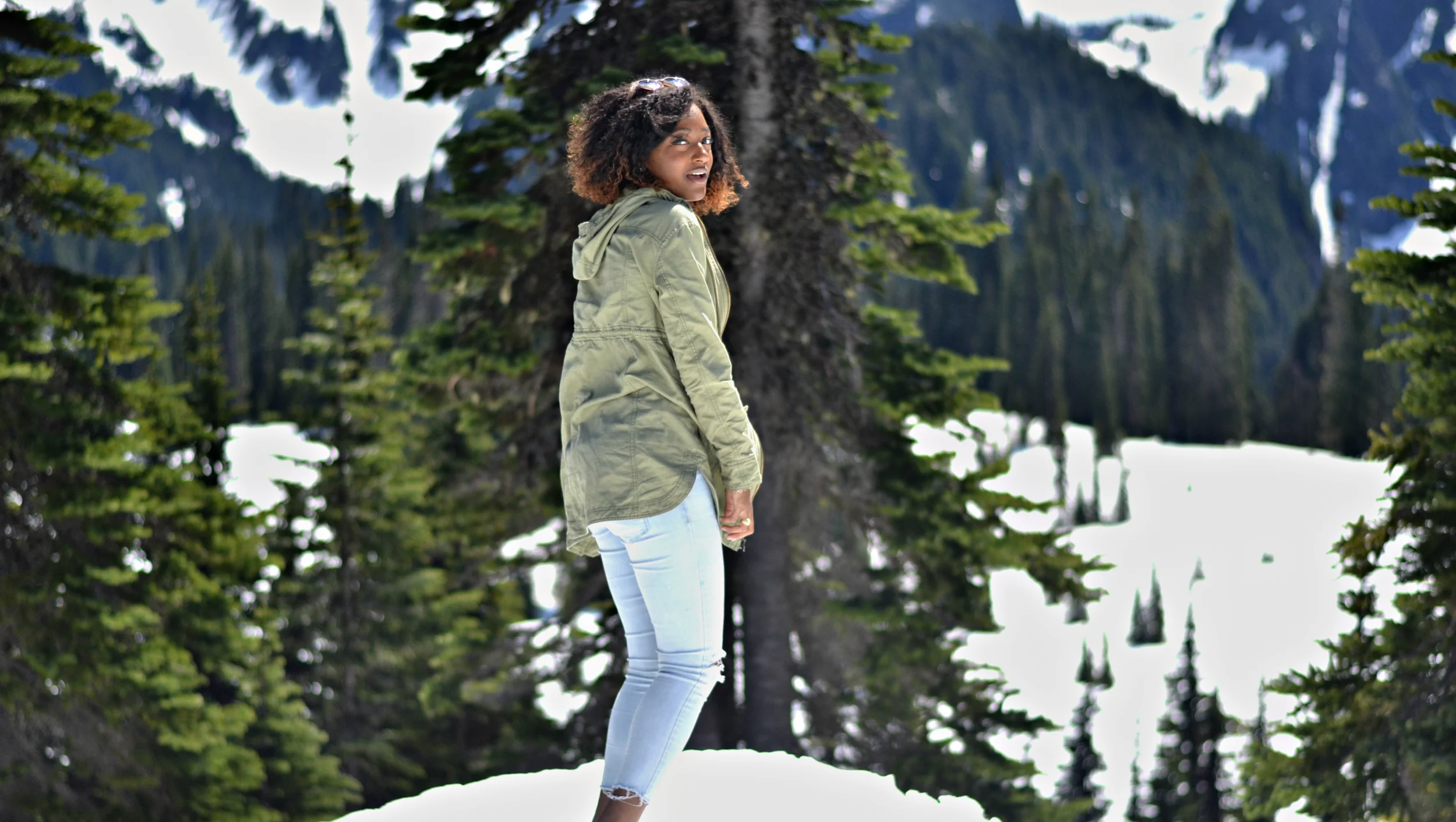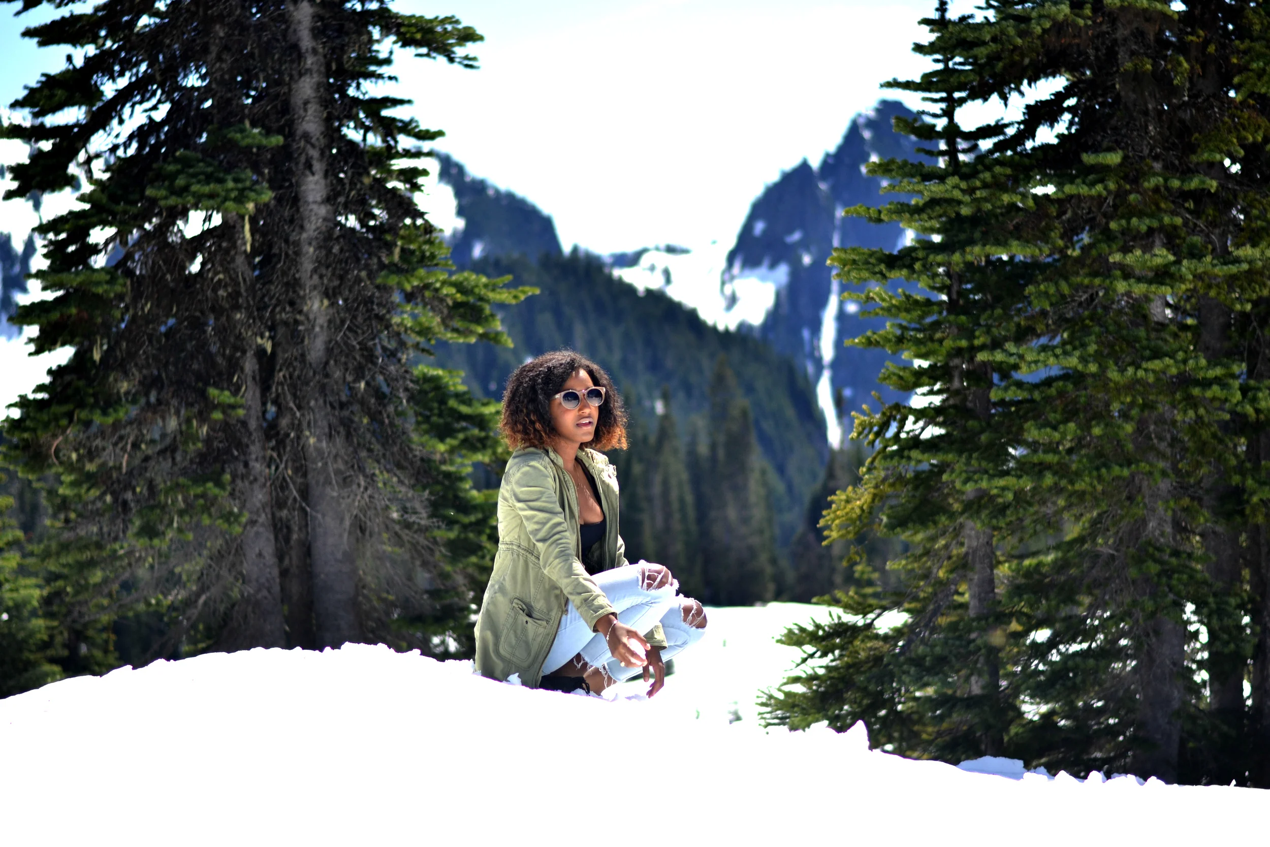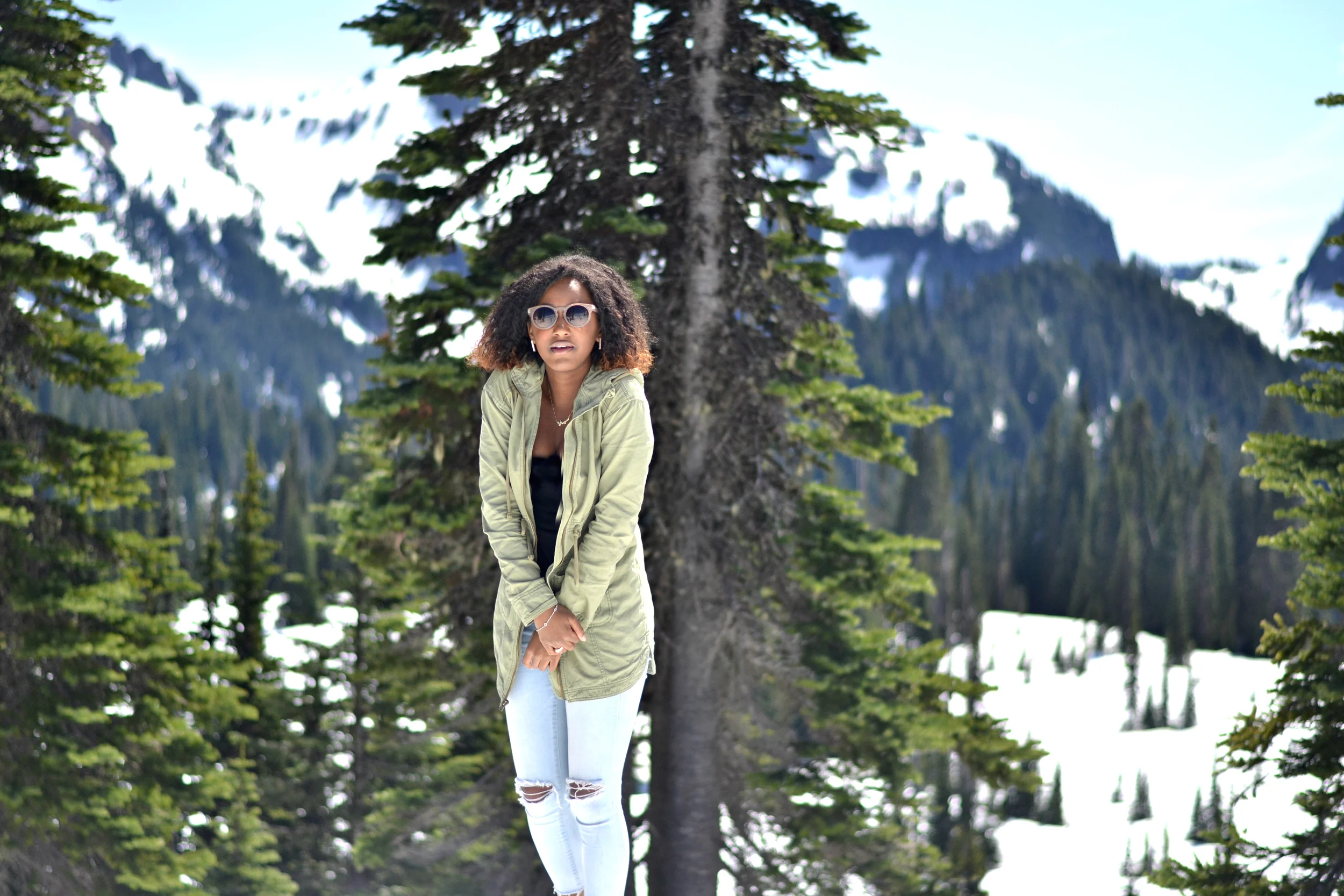 On our way to Mount Rainier, I was hoping that there'd be snow since I'd never seen it before. I kept saying to Ivonna "Omg it better snow! I'm going to be so mad if it's not snowing!". Some of you may be thinking, "Okay, you're 23 years old and you've never seen snow before?" or "Ugh, I live in snow and its such a pain!". Well, I live in Texas and it never snows here. Ever. And sure, I've traveled to places that snow but I never traveled there while it happened to be snowing. So this was huge for me! This was one of my "Firsts".